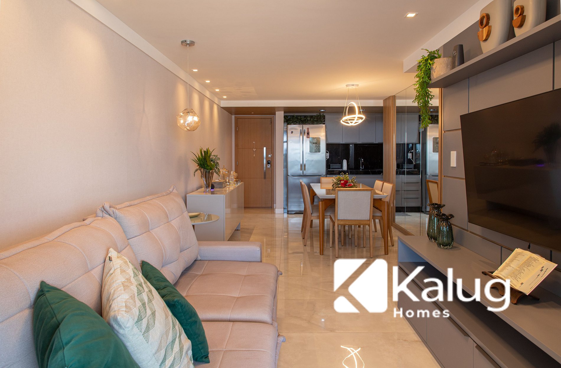 Sala de estar/jantar com TV;