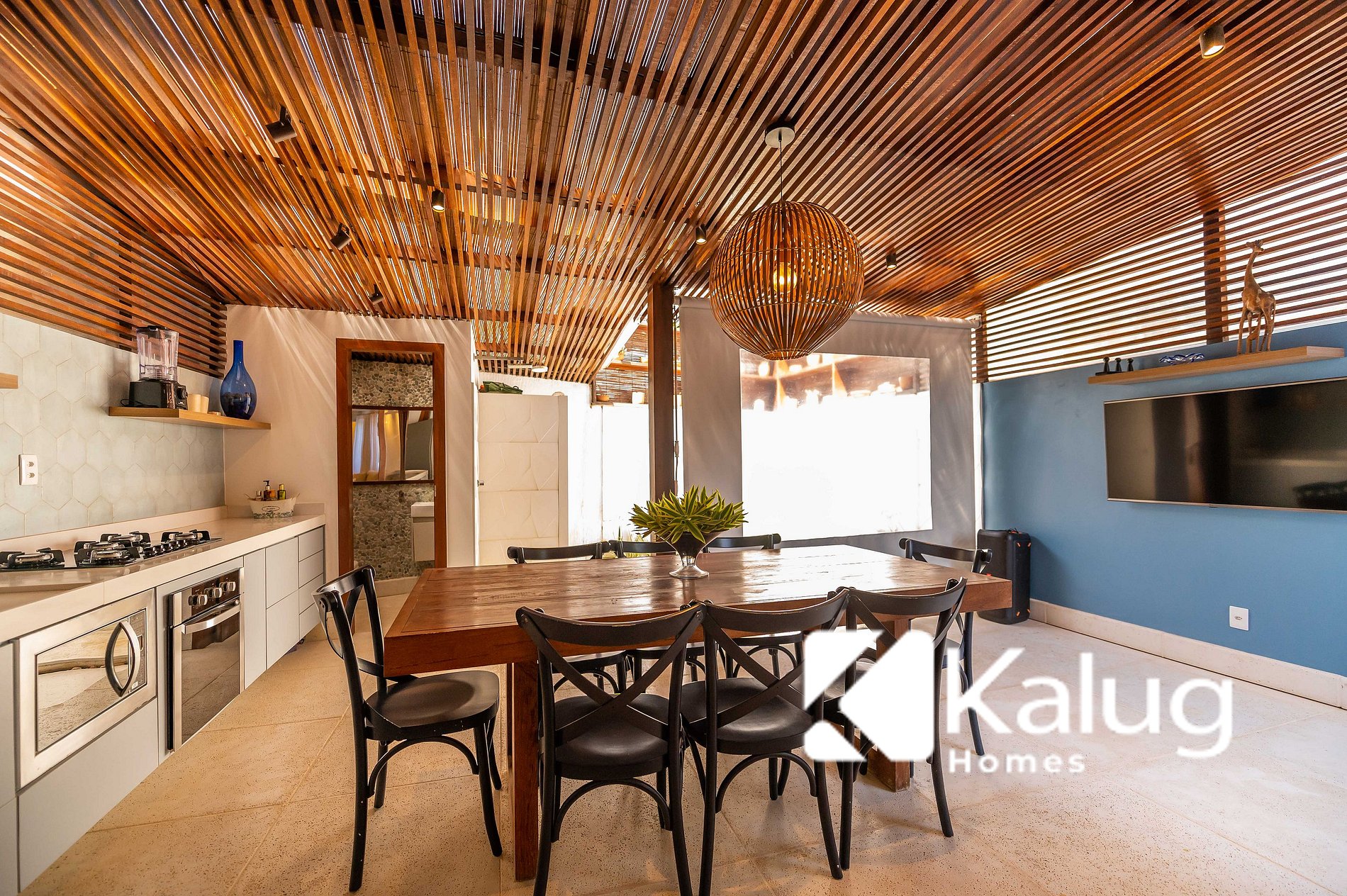 -> Cozinha equipada com geladeira, cooktop, forno, microondas, itens como talheres, copos, liquidificador etc;