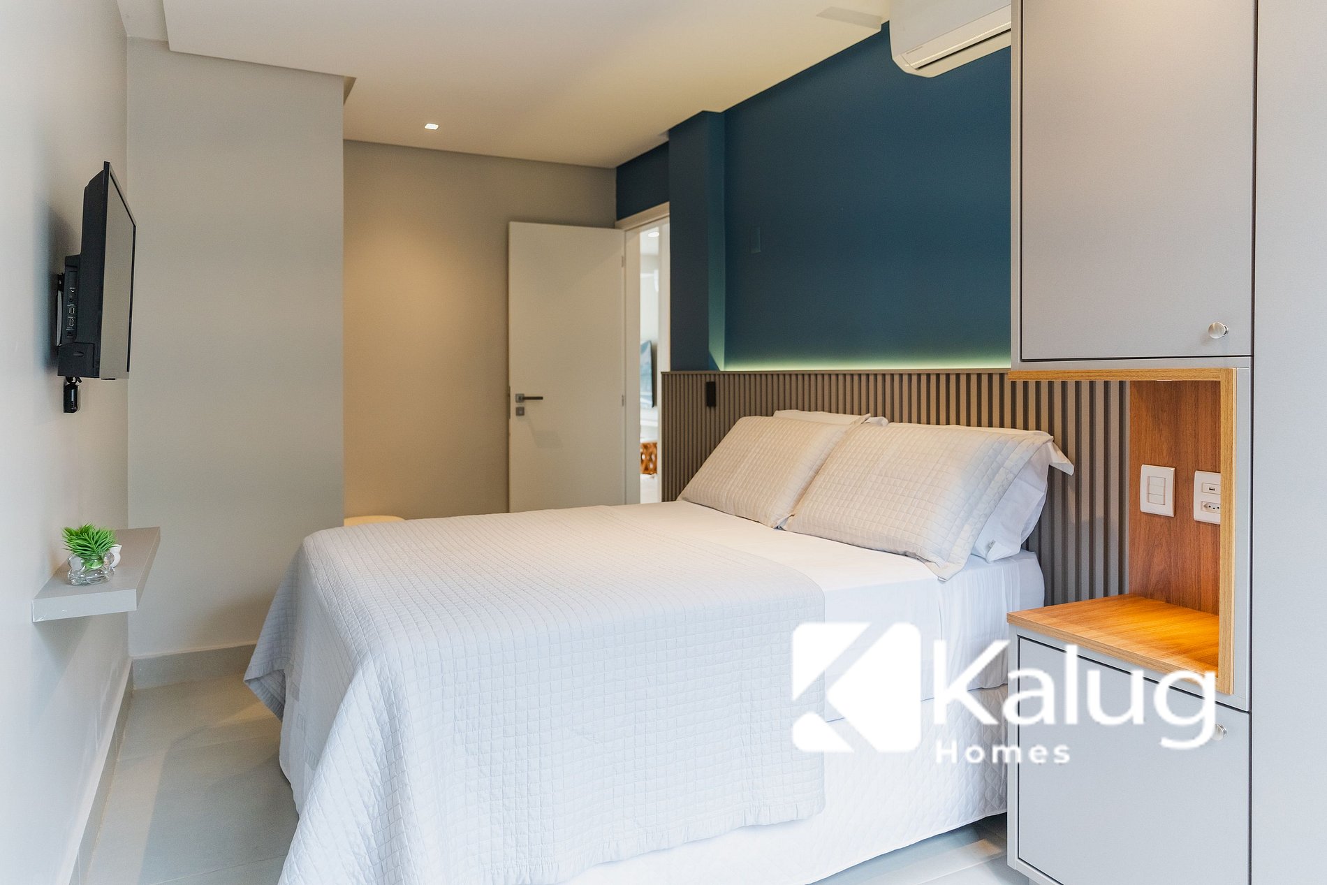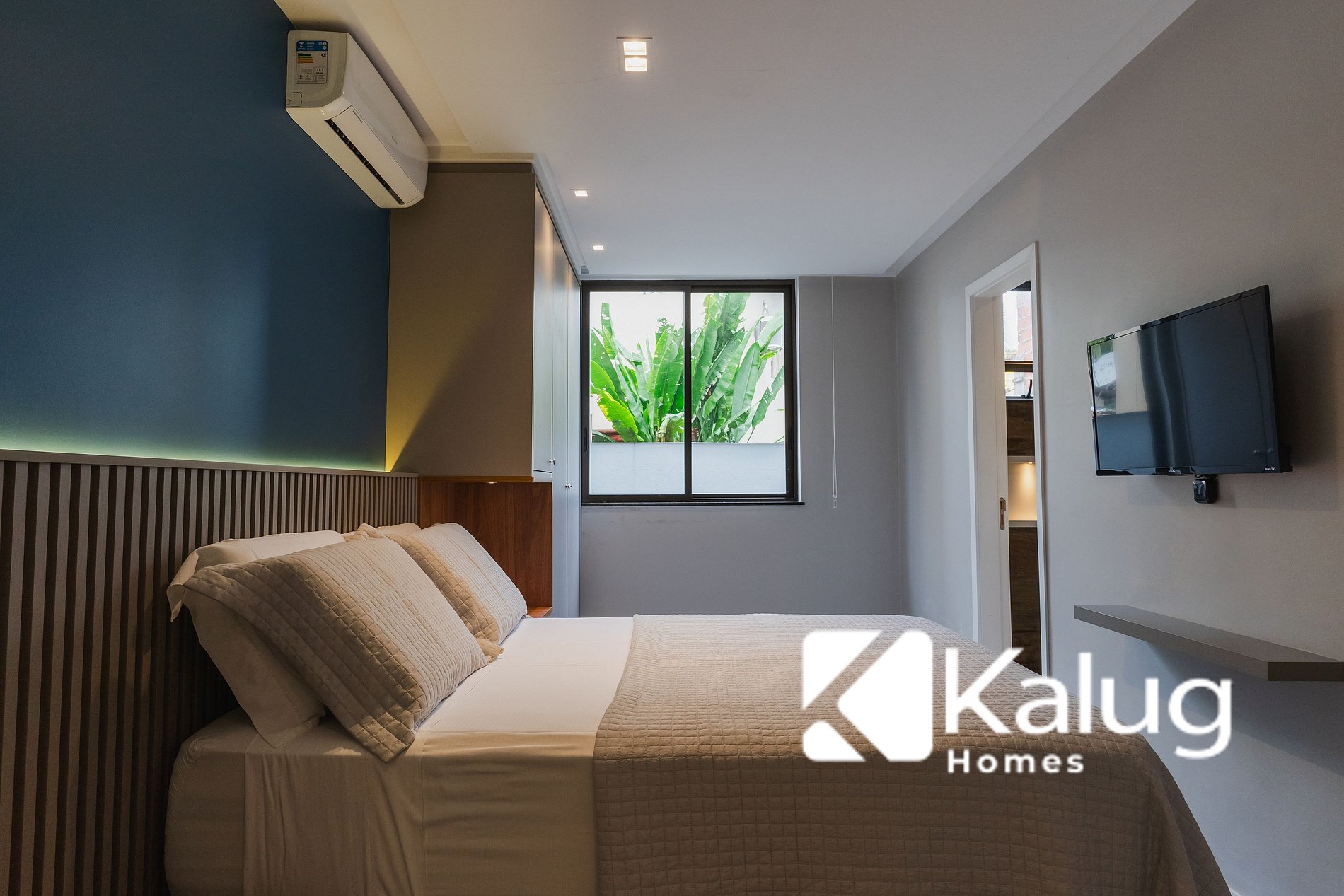 • 01 suíte com cama queen, ar-condicionado, cortinas e TV, oferecendo mais conforto e privacidade;
