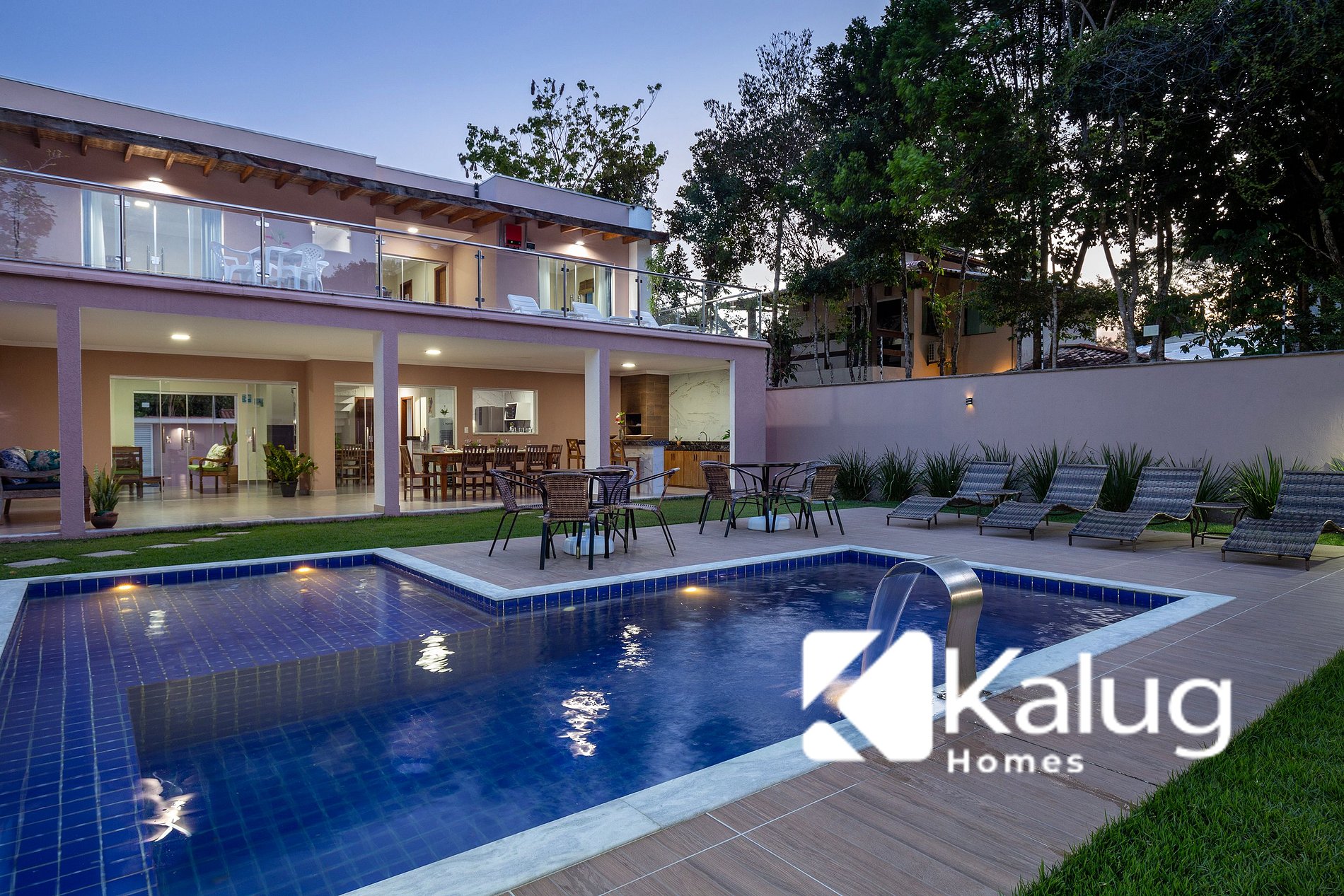 - Piscina com cascata;