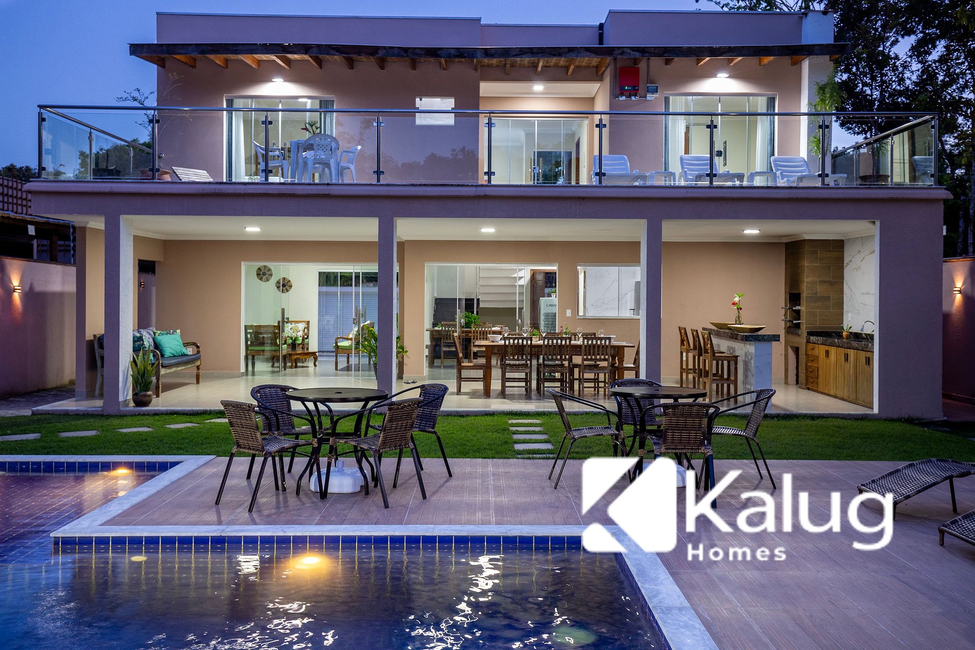 A Casa tem 900m² e oferece uma excelente estrutura com Piscina, Wi-Fi, Churrasqueira, Área de convivência, Estacionamento, Ar condicionado e acomoda até 14 pessoas, e ainda conta com uma cozinha equipada e completa para agregar na sua estada.