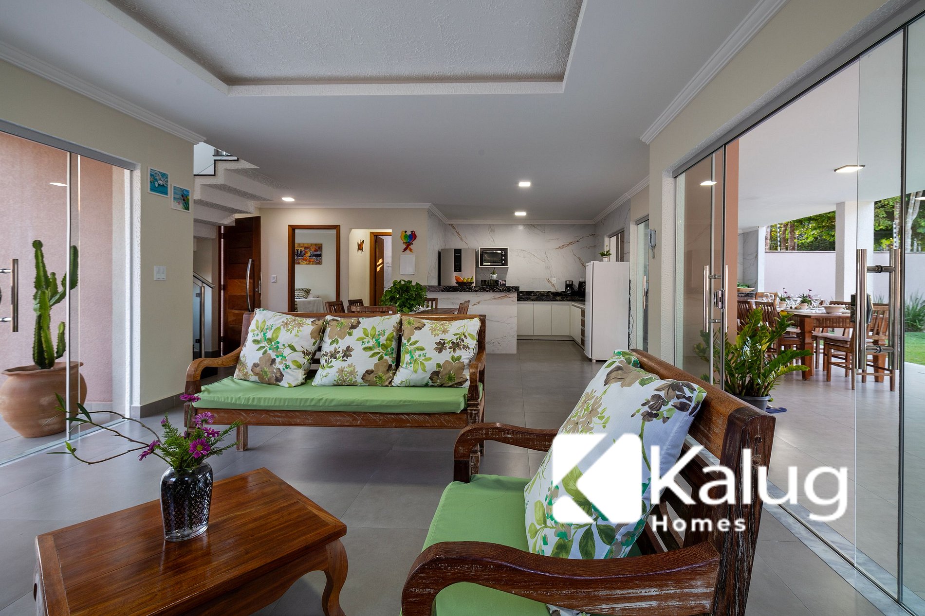 - Cozinha integrada com sala de jantar e estar;
